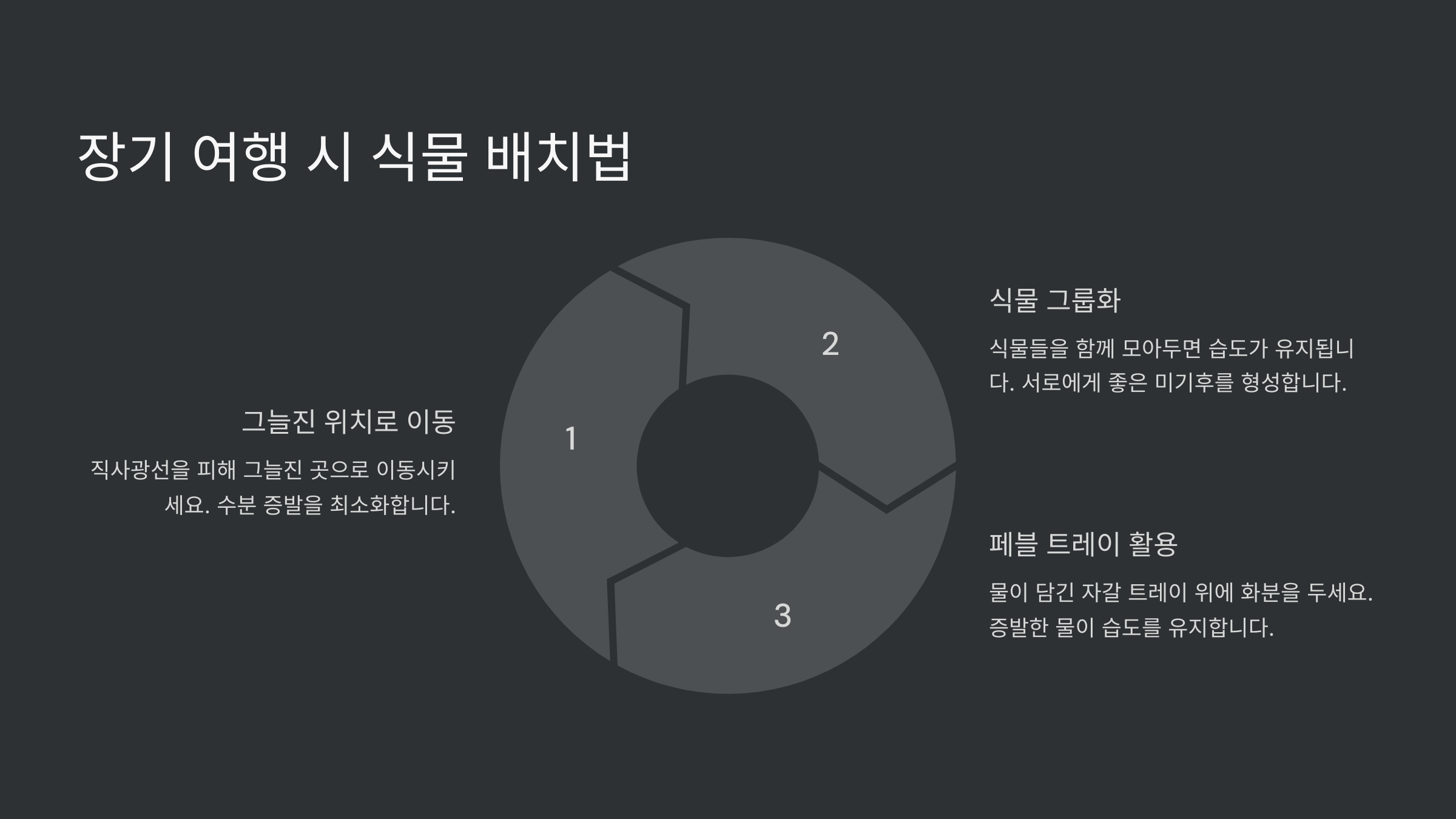 여행이나 출장으로 오랫동안 집을 비우게 된다면 식물의 위치를 적절하게 조정하는 것이 중요해요! 🌿