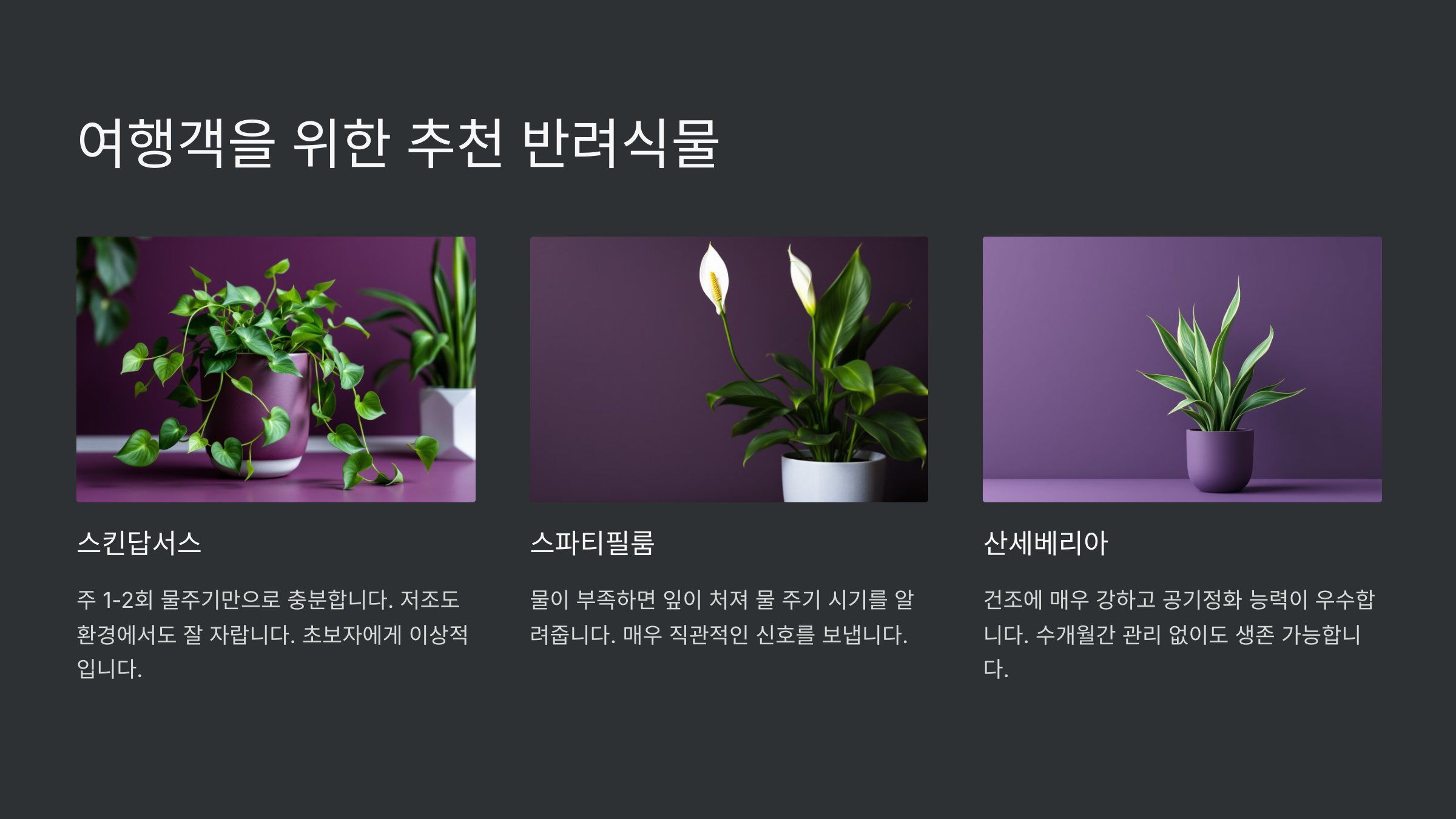 오늘은 관리 부담 없이 키울 수 있는 반려식물 리스트와 여행 중에도 식물을 건강하게 유지하는 방법을 알려드릴게요! 🚀