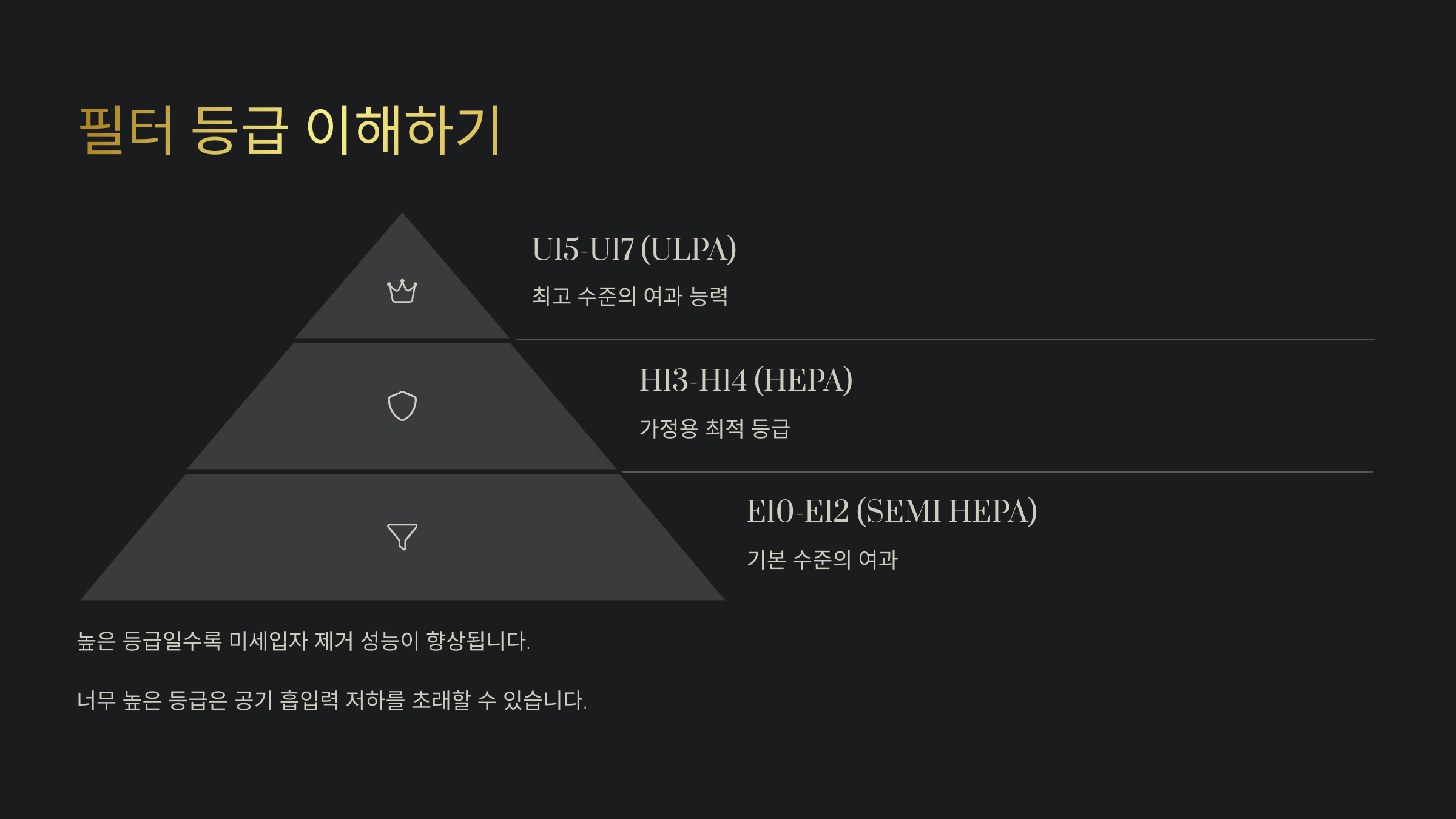 필터 등급 이해하기 🧩 주요 필터 등급별 특징표
