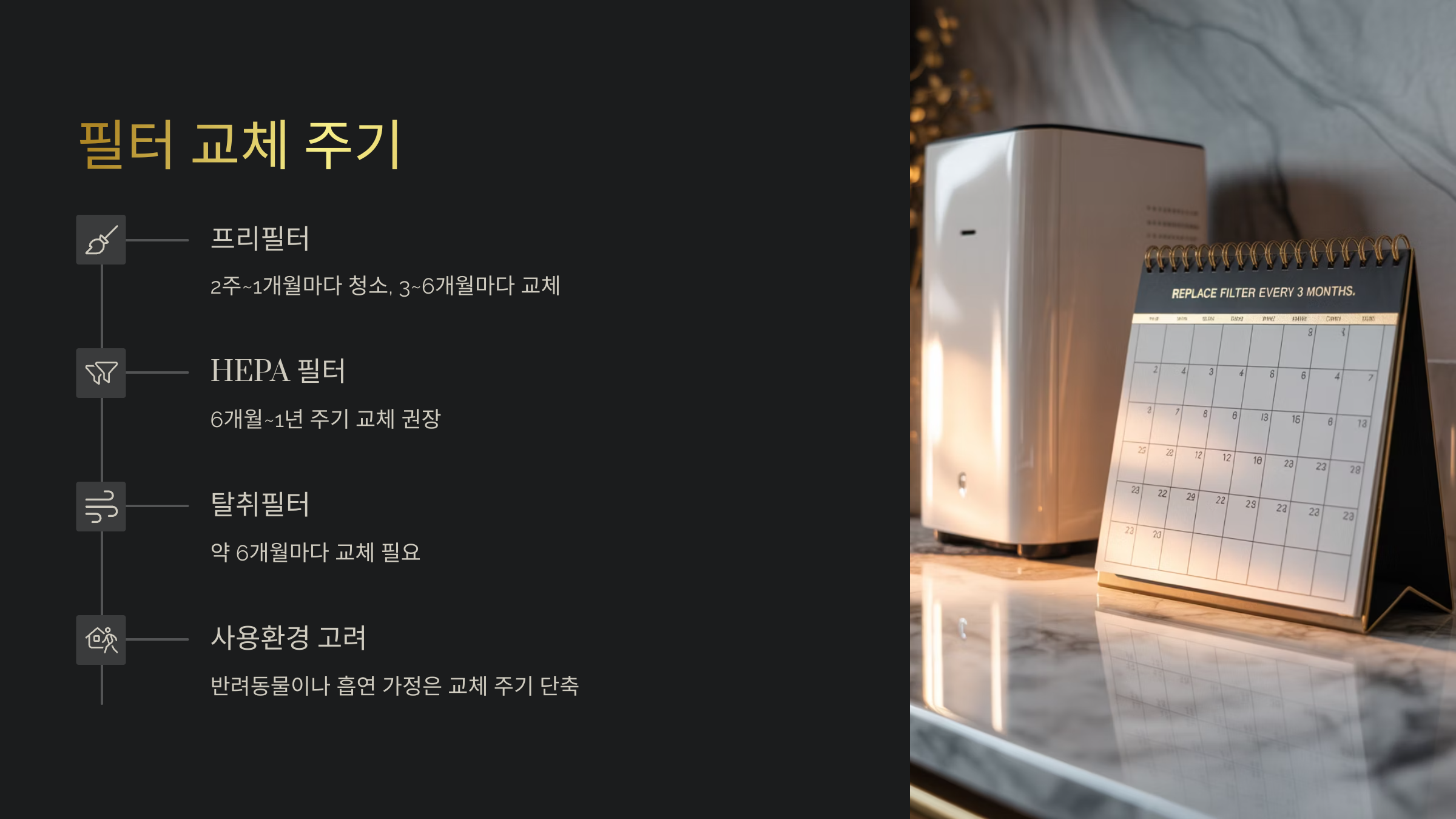 그리고 잊지 말아야 할 꿀팁! 필터의 교체 기록을 앱이나 메모장에 꼭 적어두면 관리하기 정말 쉬워져요. 필터는 눈에 보이지 않지만 건강을 지켜주는 중요한 파수꾼이에요. 😷