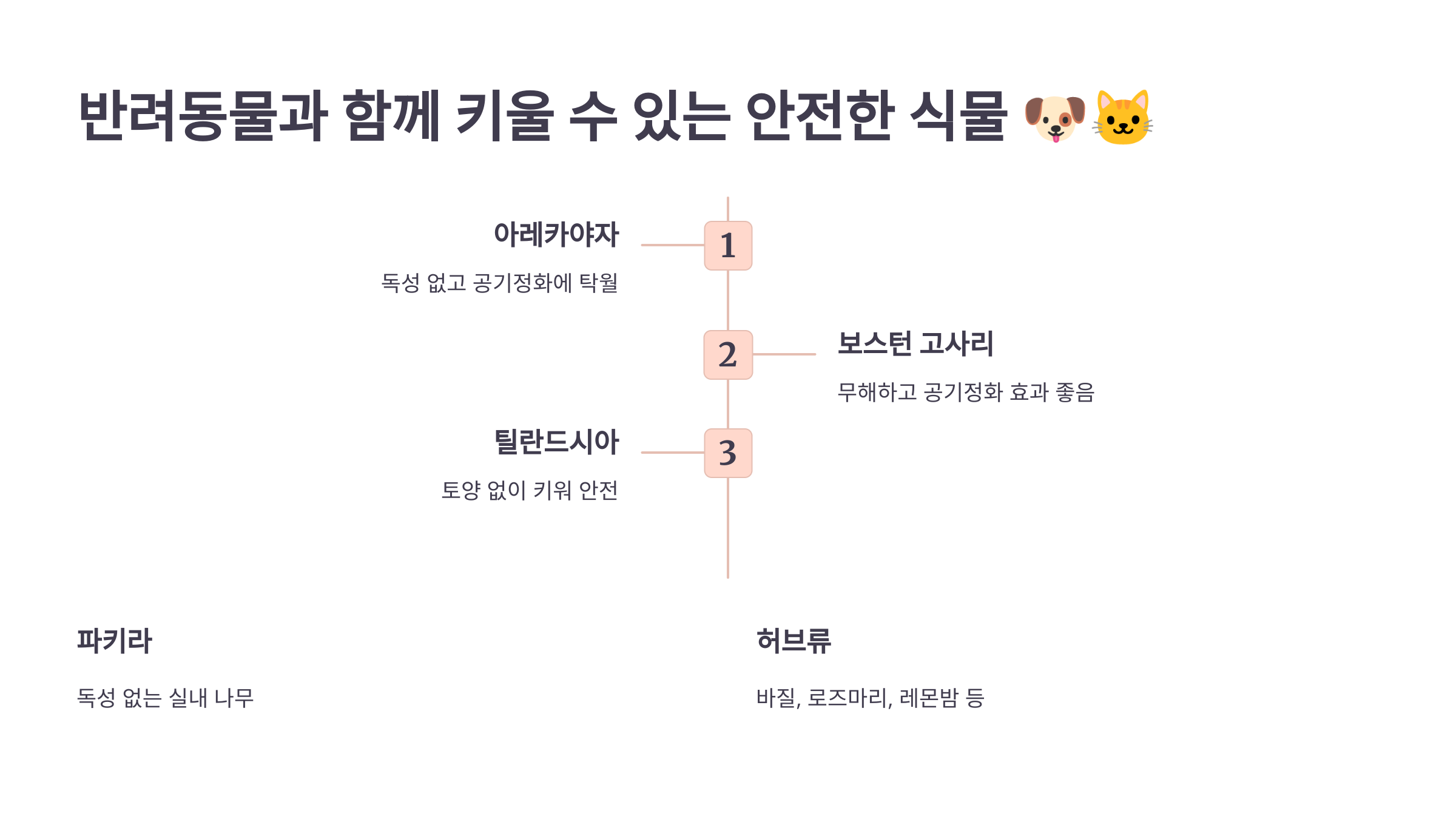 다행히 반려동물에게 해가 없는 식물들도 많아요! 😊 안전한 반려식물을 소개해 줄게요.