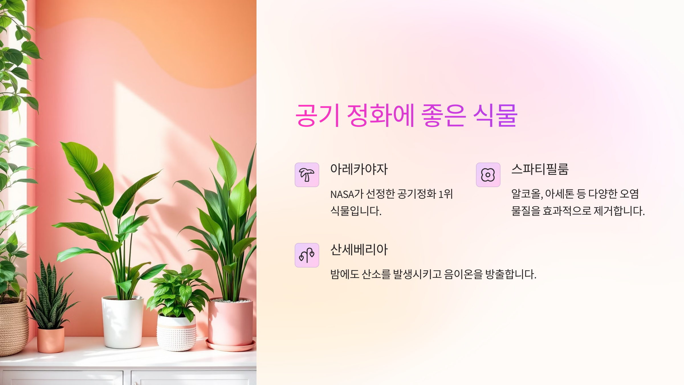 실내 공기를 맑게 만들어주는 식물들은 집안의 쾌적함을 높여줘요. 특히 요즘처럼 미세먼지나 새집증후군이 걱정될 때, 식물을 통해 자연스럽게 정화 효과를 얻을 수 있어서 더욱 인기죠. NASA에서도 실험을 통해 공기 정화 식물을 발표한 적이 있어요.