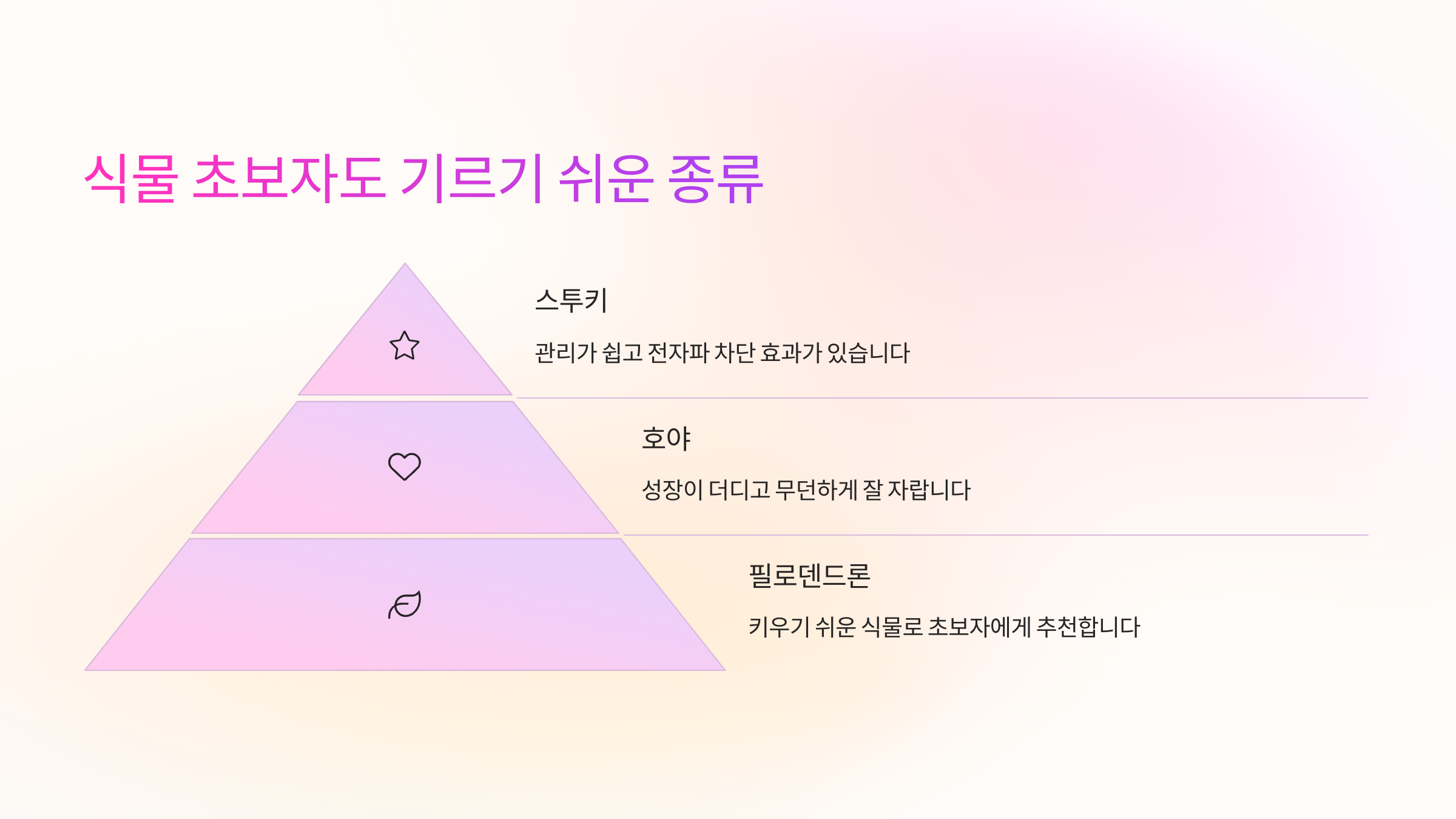 초보자에게 가장 사랑받는 식물은 ‘스투키’와 ‘다육이’예요. 이 두 식물은 햇빛이나 물 관리가 까다롭지 않아서 직장인이나 학생들처럼 바쁜 일상 속에서도 잘 키울 수 있어요. ‘잎이 통통한 식물은 물을 자주 안 줘도 된다’는 말도 있죠.