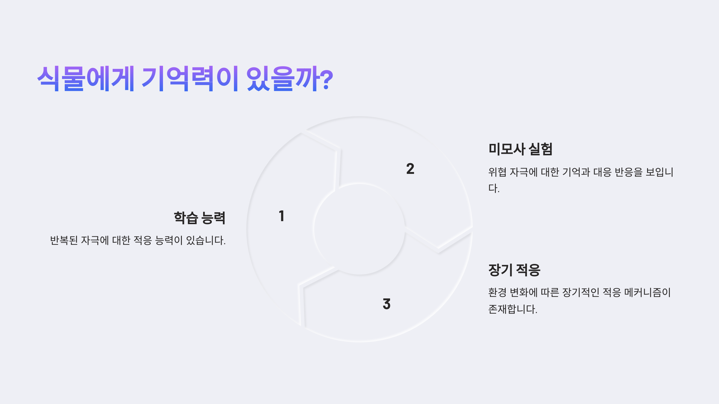 기억력은 보통 동물이나 인간이 가진 능력이라고 생각하지만, 식물도 어떤 경험을 ‘기억’하고 이에 따라 반응을 조절할 수 있다는 연구가 있어요. 😮
