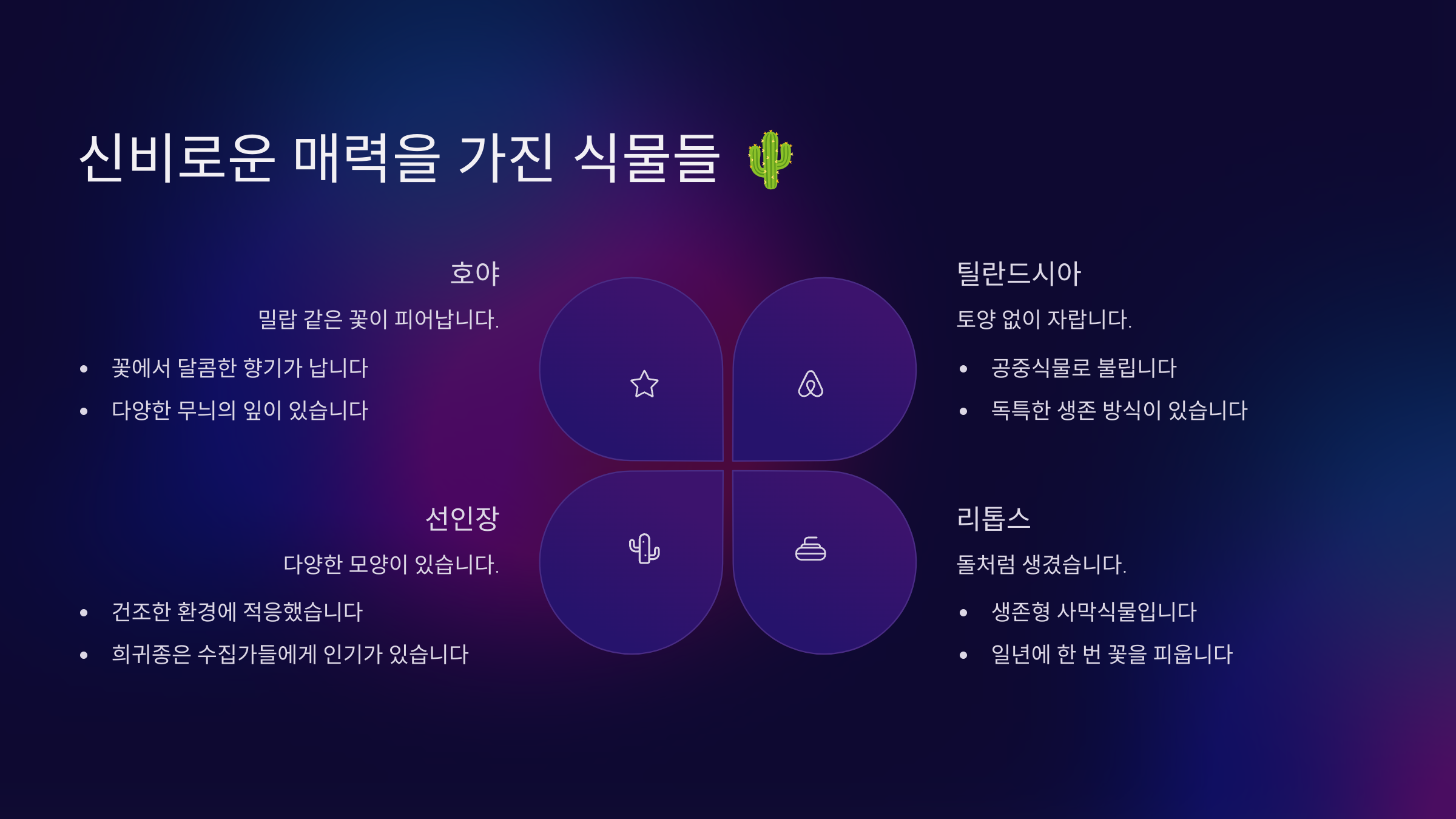 이런 신비로운 식물들은 인테리어 효과도 뛰어나서, 공간을 특별하게 만들어 준답니다! 😊