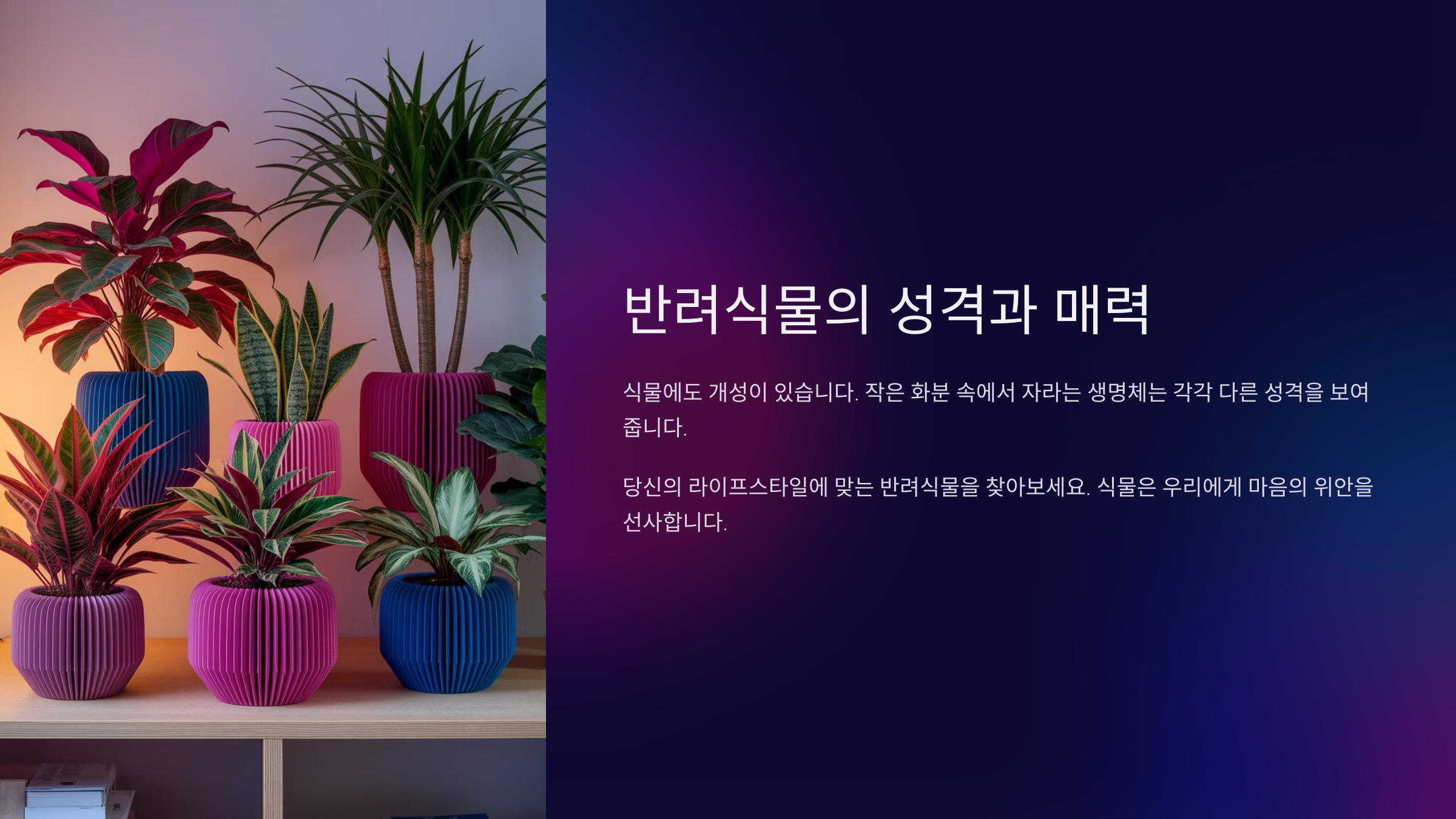 반려식물도 성격이 있다는 사실, 알고 있었나요? 🌿 사람마다 성격이 다르듯이 식물들도 저마다 개성이 있어요. 어떤 식물은 사람의 손길을 많이 필요로 하고, 어떤 식물은 독립적이며, 어떤 식물은 빠르게 성장하거나 꽃을 자랑하는 것을 좋아한답니다.