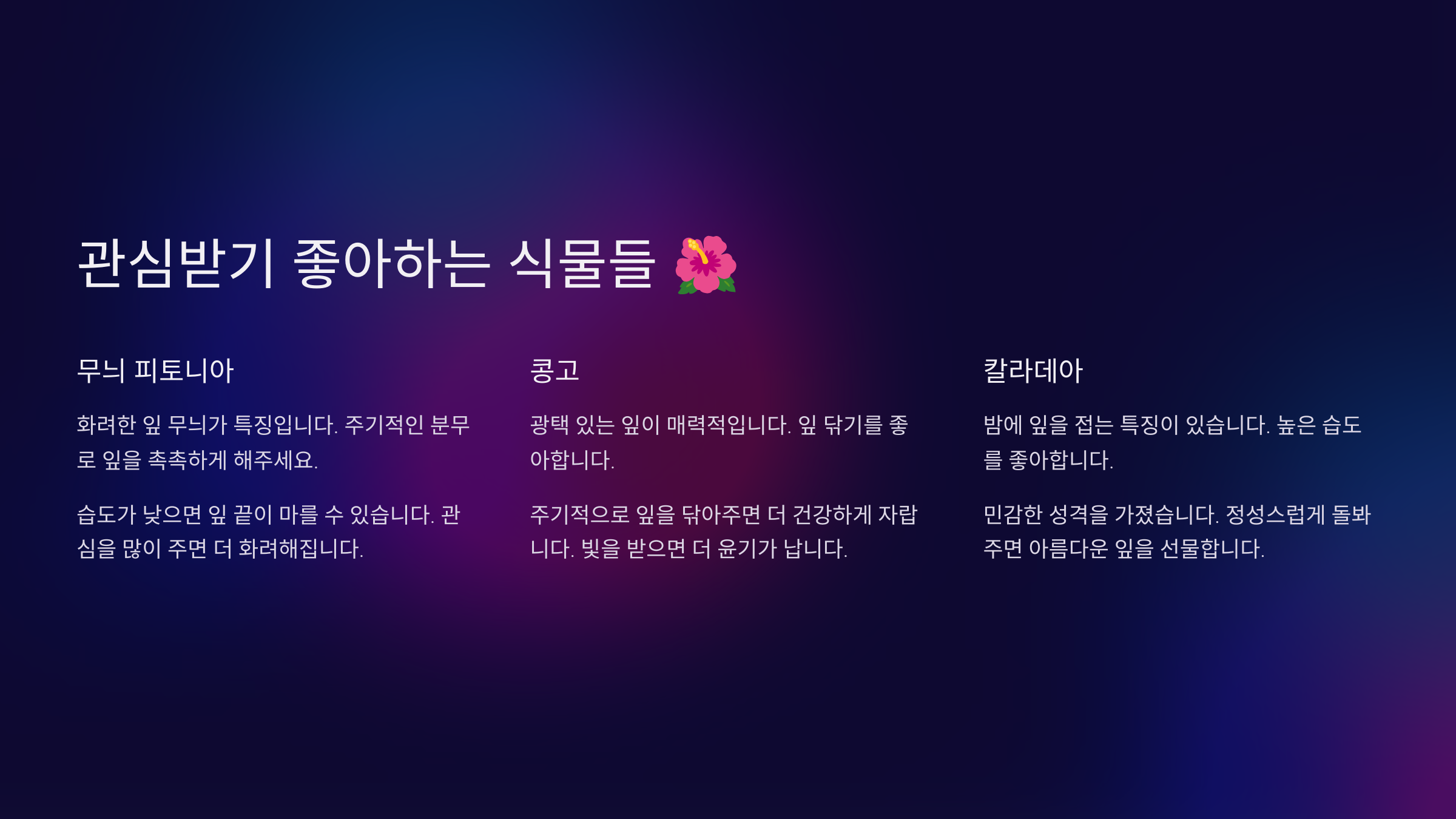 이 식물들은 사랑과 관심을 주면 더욱 멋지게 자라니, 애정을 가득 담아 키워 보세요! 🌺