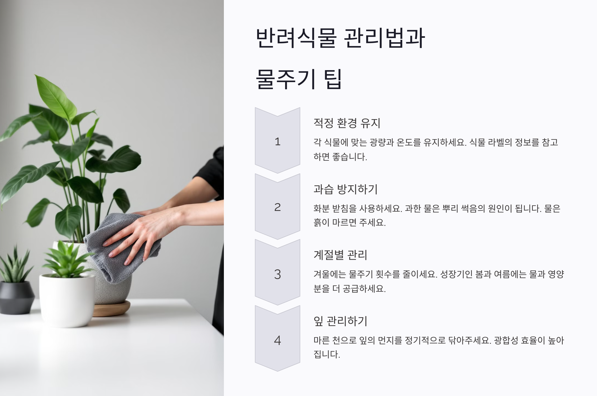 배치를 잘했다면, 이제 식물을 건강하게 관리하는 방법도 알아볼까요? 💦