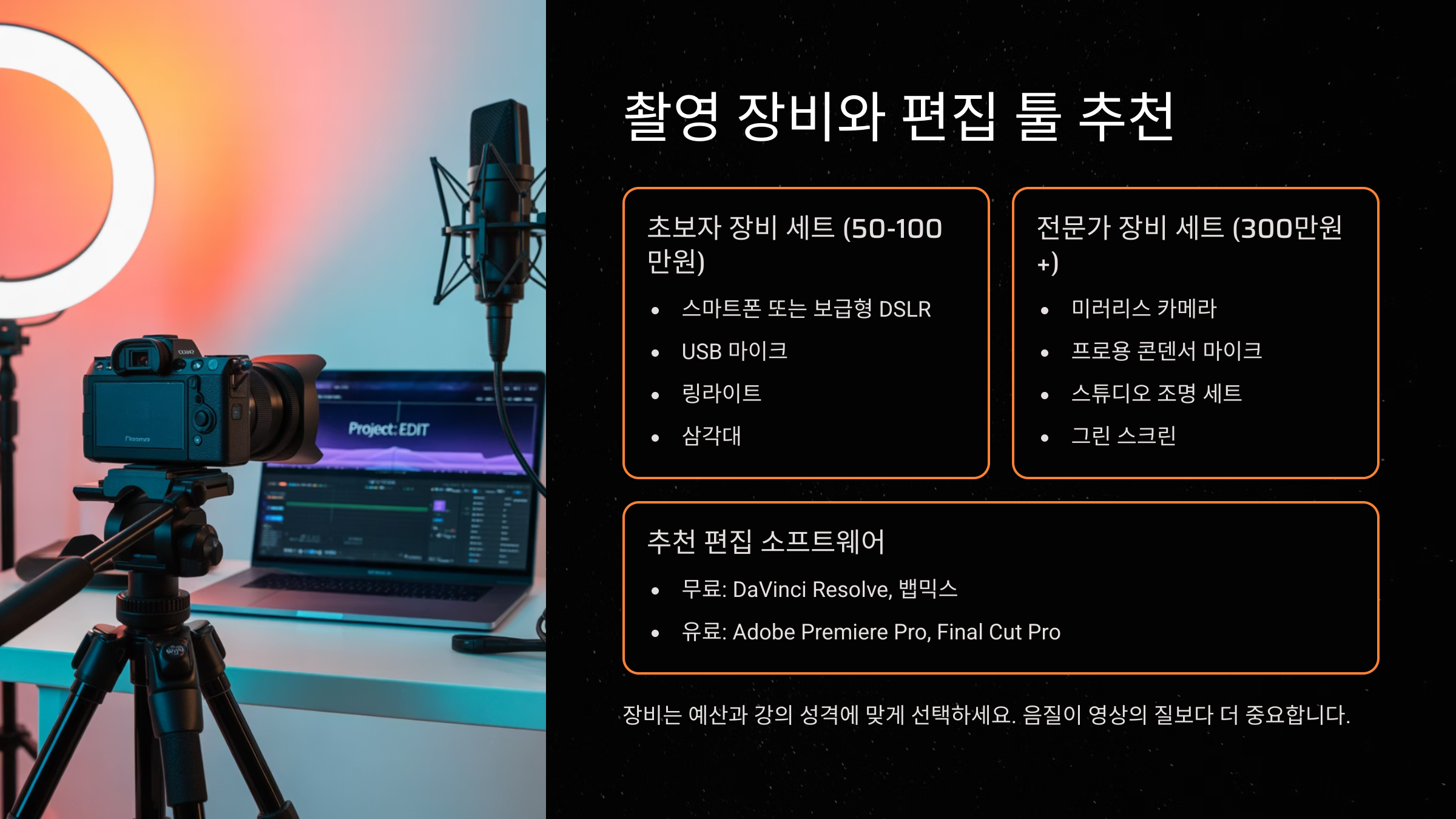 촬영 장비와 편집 툴 추천