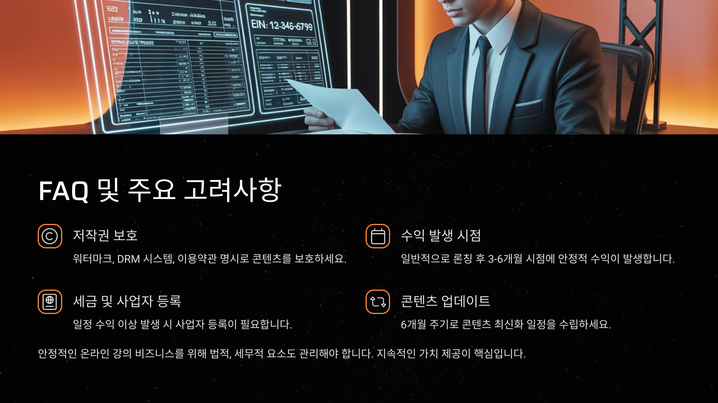 이제 온라인 강의를 처음 기획하는 단계부터, 촬영, 업로드, 판매와 관리까지 전 과정을 실전형으로 정리해드릴게요!