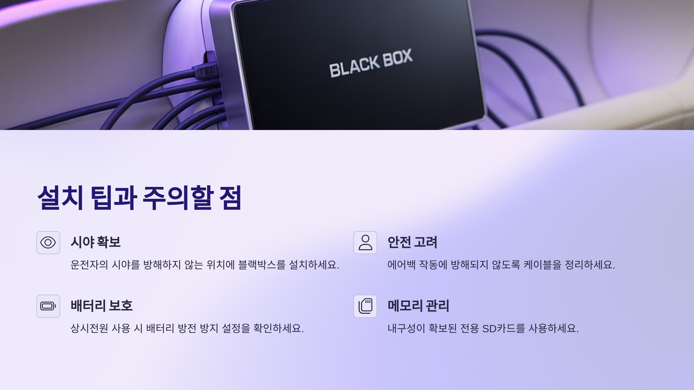 Q2. 블랙박스 설치 후 주기적으로 해야 할 관리가 있나요?