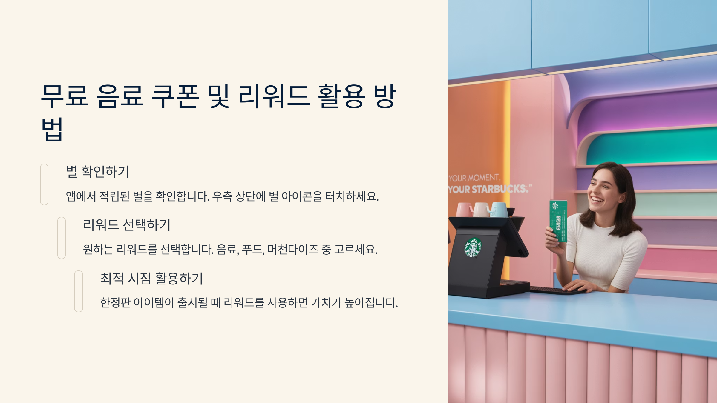 스타벅스 리워드 매장에서 결제할 때 ‘별 적립하시겠어요?’라는 질문 많이 받으시죠? 🌟 스타벅스 리워드 프로그램은 자주 방문하는 고객에게 다양한 혜택을 주는 멤버십 제도예요. 단순 적립만 하는 게 아니라, 별 모으는 재미에 빠져버리는 분들도 정말 많죠!