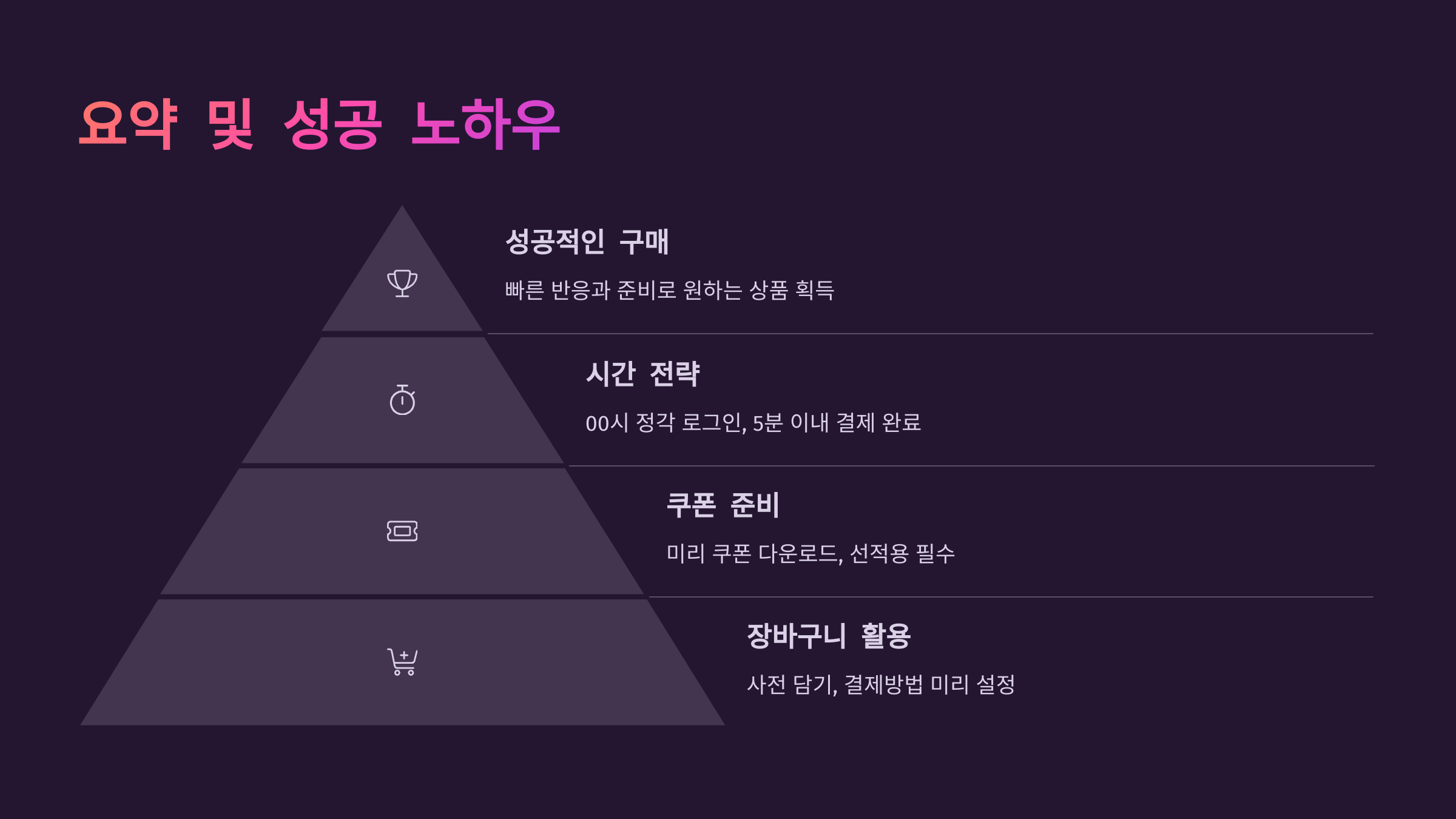 구매 성공 확률을 높이려면 미리 로그인 해두고, 결제 정보도 저장해두는 게 좋아요. 특히 위메프페이, 네이버페이 자동 결제 설정을 해두면 2초라도 빠르게 결제할 수 있어요!또한 브라우저보다는 앱이 조금 더 반응 속도가 빠르다는 후기도 많아서, 앱 중심으로 사용하는 걸 추천해요. 앱 속도 개선도 꾸준히 이루어지고 있거든요.