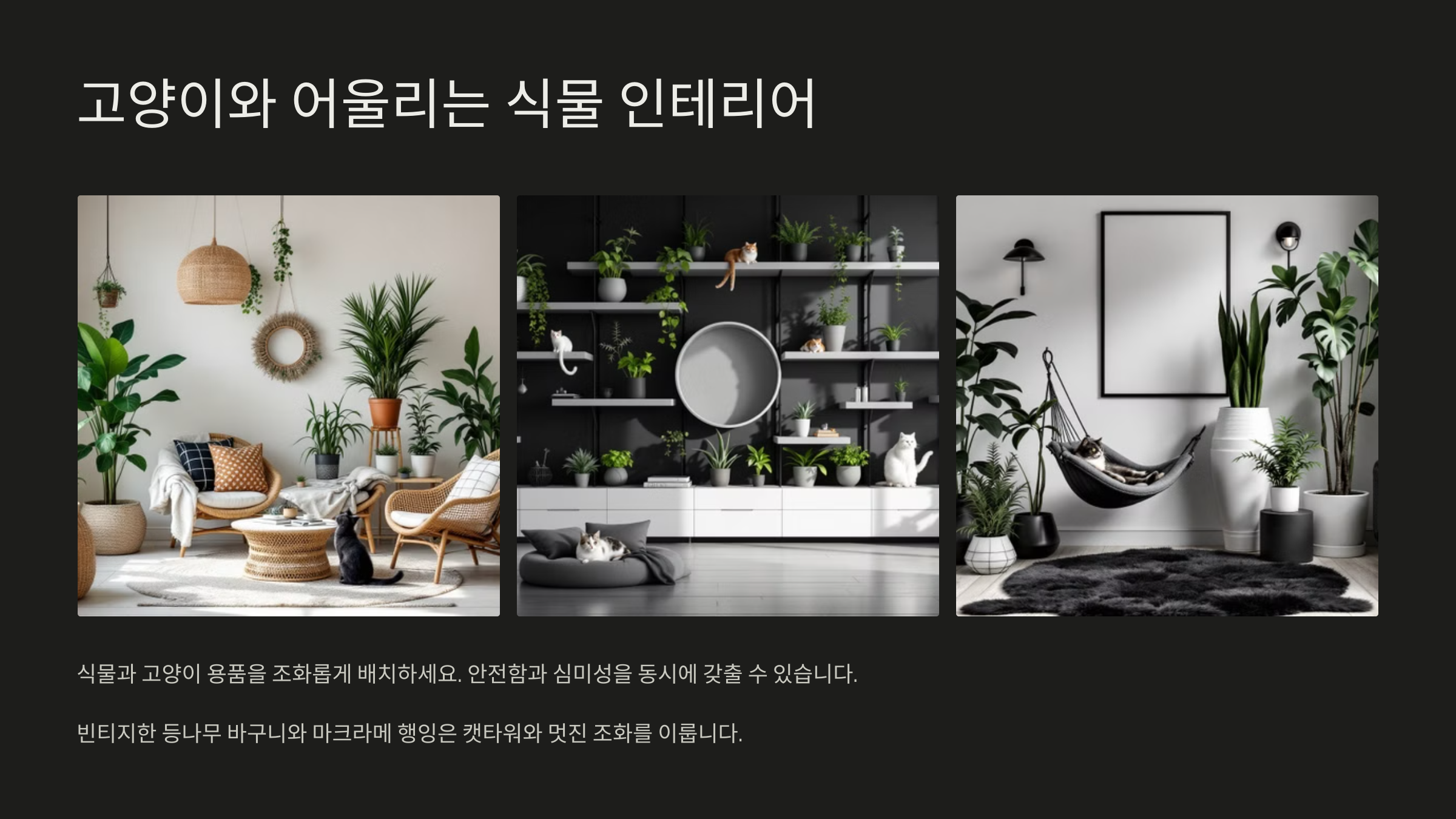 고양이와 식물, 둘 다 소중한 존재니까요. 인테리어도 감성 있게, 안전하게. 조화롭게 꾸며보세요. 이제 정말 마지막!