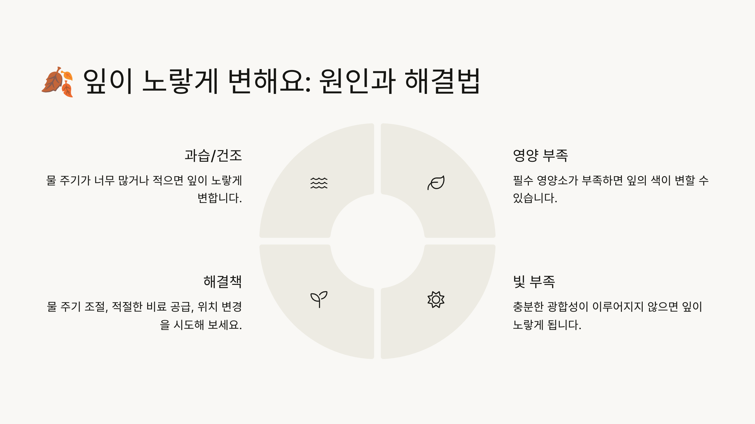 🍂 잎이 노랗게 변해요: 원인과 해결법