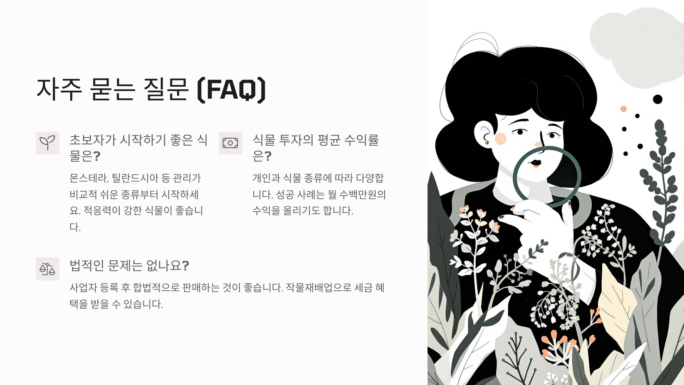 다음으로는 도대체 식물이 어떻게 돈을 만들어내는 구조인지, 어떤 루트로 수익이 생기는지 아주 실질적인 내용을 다뤄볼게요! 💸