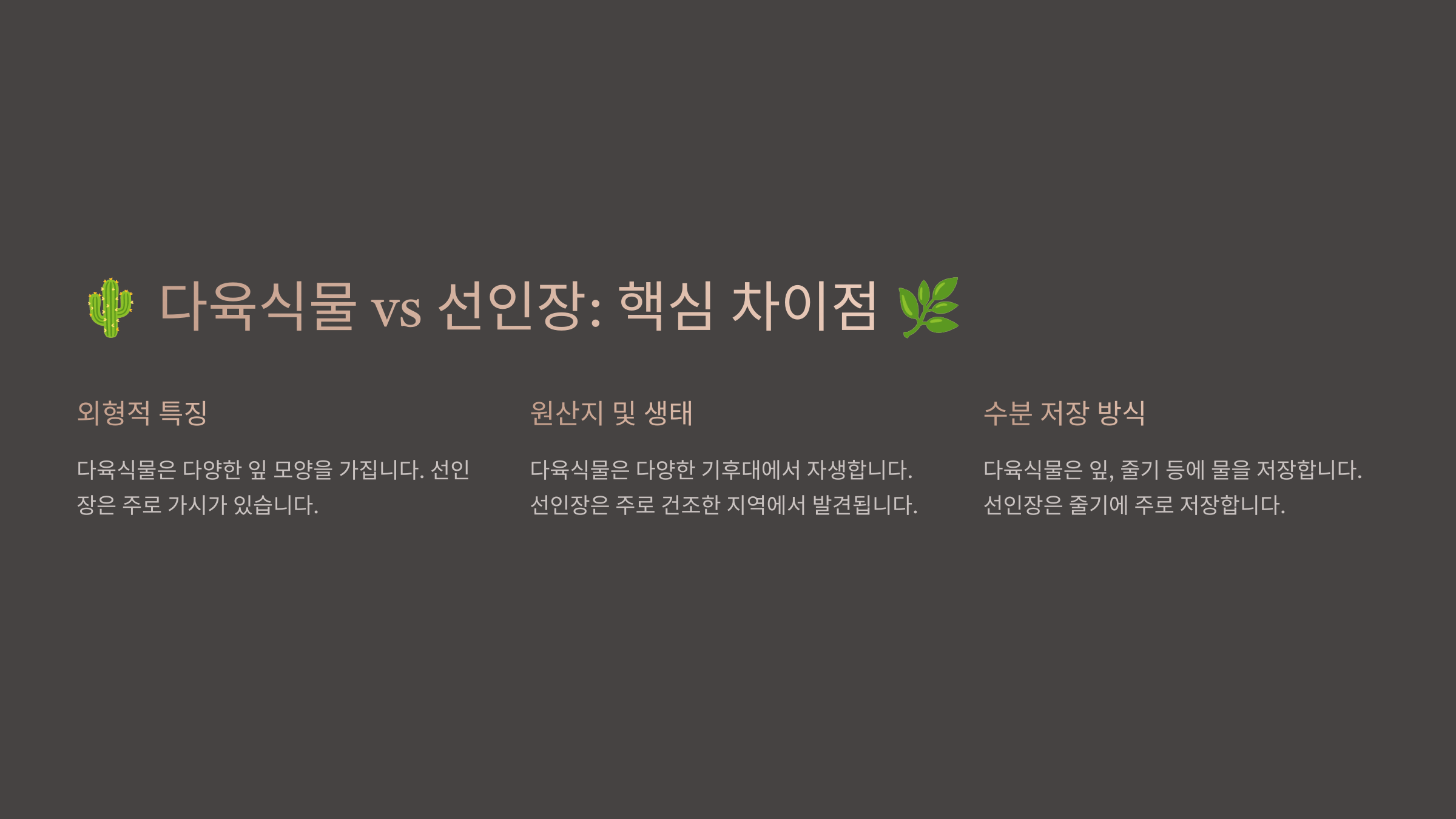 🌿 다육식물과 선인장의 주요 차이점 비교