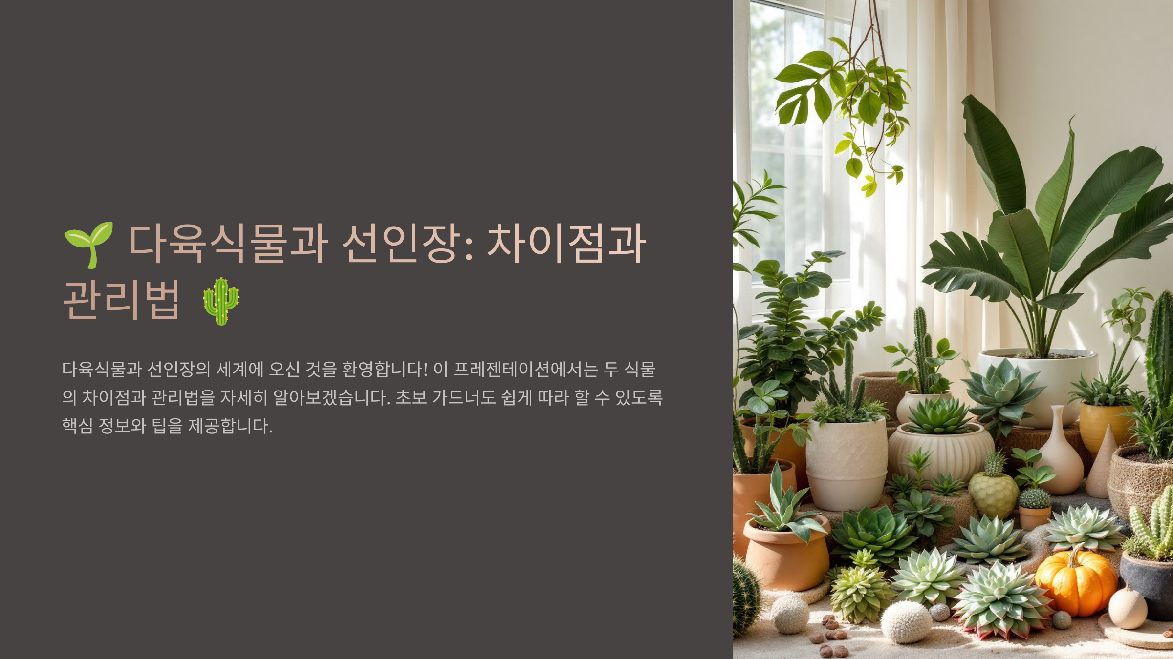 이제 다육식물과 선인장의 차이점을 완벽히 알게 되었죠? 😊 나에게 맞는 반려식물을 선택해서 즐겁게 키워보세요! 🌱🌵