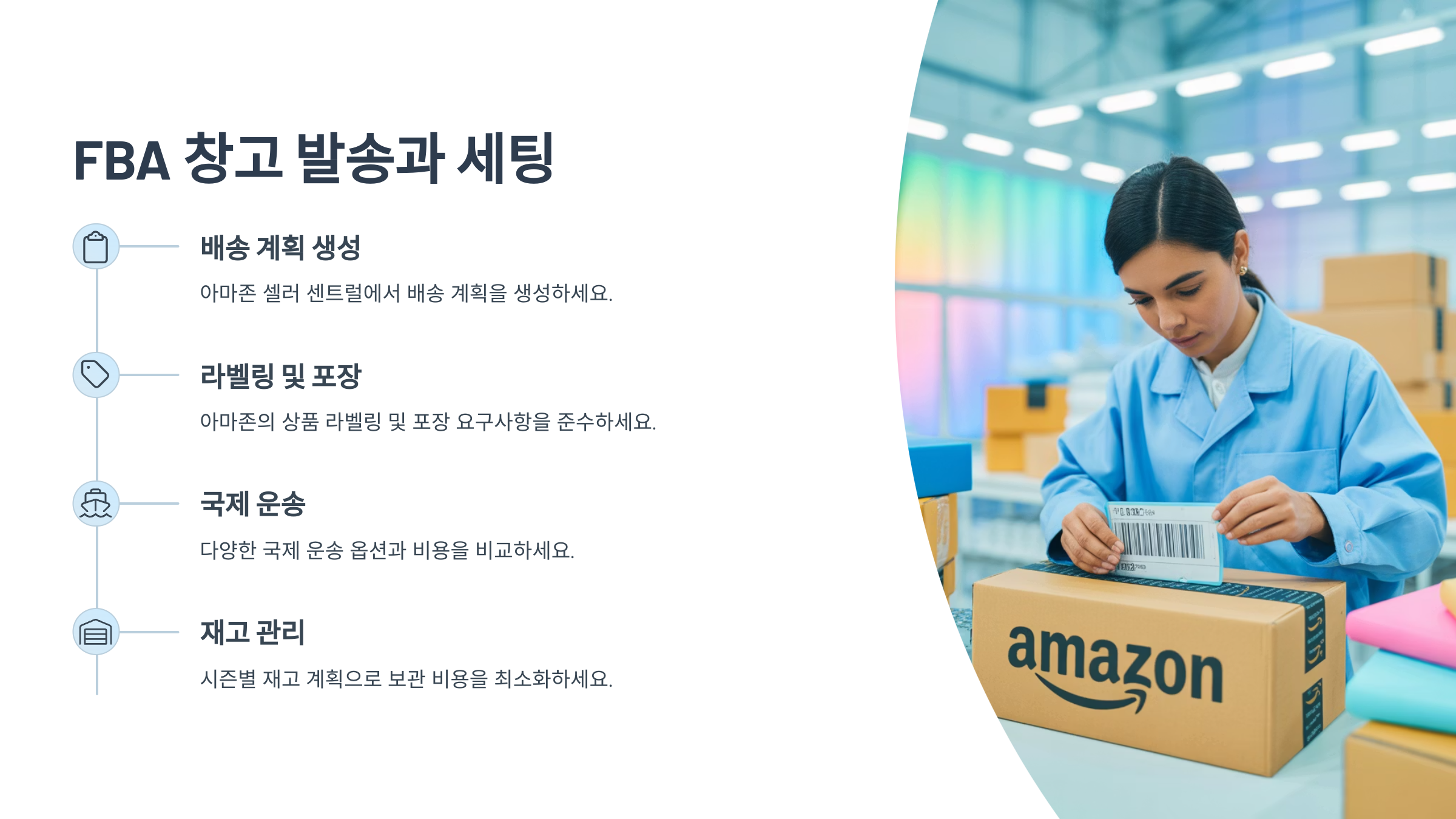 상품을 리스팅한 뒤에는 아마존 창고로 물건을 보내야 해요. 이 과정을 Fulfillment 준비라고 해요. 상품마다 라벨 부착, 패키징 조건이 있으니 정확히 따르는 게 중요해요.